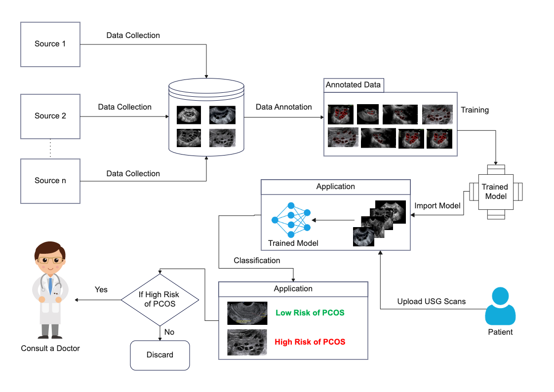Understanding how data flows through each stage of this design pattern is crucial for optimizing AI applications. The following diagram is an example of what a data flow might look like for a medical AI application: